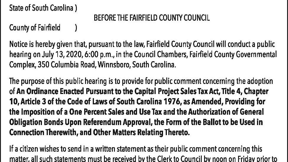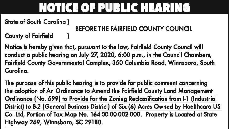 Notice of Public Hearing: Fairfield County Land Management Ordinance