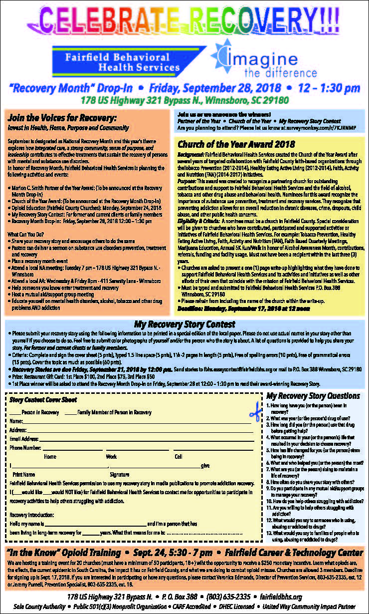 WINNSBORO – Even though ‘Recovery Month’ has just begun this week for Fairfield County’s Behavioral... Read more